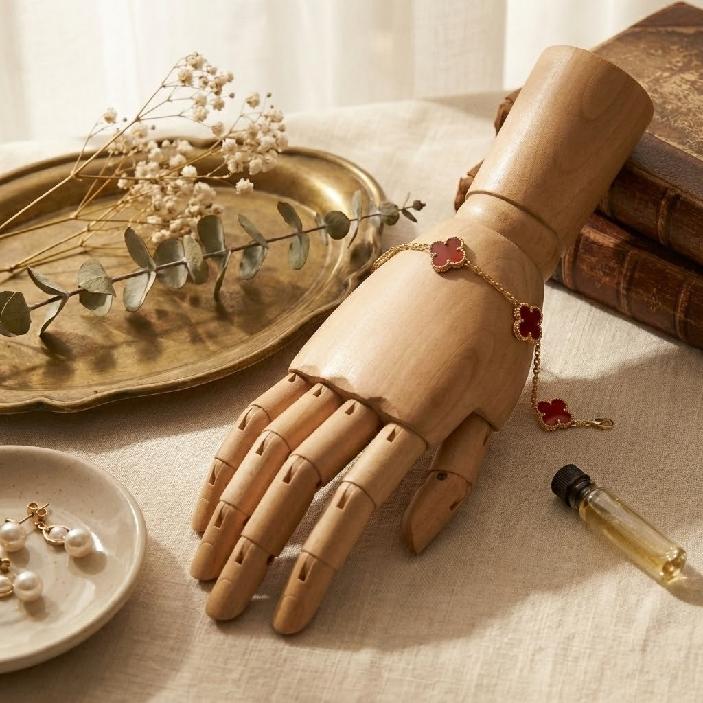 Embrace a touch of timeless charm with this exquisite bracelet, featuring vibrant red four-leaf clover motifs set on a delicate gold chain. The striking contrast between the deep scarlet inlay and the beaded gold edges creates a look of understated luxury, making this piece a symbol of good fortune that effortlessly elevates both day and evening wear.